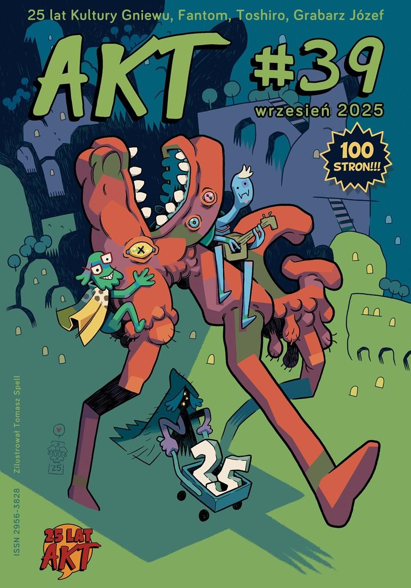 W 25-tym roku istnienia AKTu nie skupiamy się wyłącznie na sobie i swoich urodzinach. W zasadzie w nowym numerze jest o tym najmniej. Tym razem solidną część magazynu poświęciliśmy urodzinom (również dwudziestym piątym) wydawnictwa Kultura Gniewu. W AKT 39 przeczytacie wywiad z Karoliną, Szymonem, Jarkiem i Pawłem z Kultury Gniewu, a swoimi pracami wsparli nas autorzy wydawani przez KG, wśród nich Katarzyna Mazur, Joanna Sępek, Herzyk, Krzysztof Owedyk, Piotr Nowacki, Jarosław Wojtasiński, Piotr Wojciechowski, Michał Śledziński, Jan Mazur, Jacek Świdziński oraz Spell, który swoją ilustracją wita Was z okładki tego numeru.