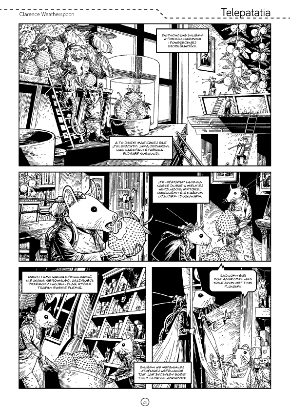 39. numer to po raz pierwszy aż 100 stron magazynu! Więcej miejsca to więcej komiksów oraz publicystyki. Znajdziecie wewnątrz m.in. naszych znanych autorów i dalsze przygody ich postaci jak Dr Shannon od Zvyrke, Clinta Northwooda od Jaro czy oczywiście kultowego bohatera rysowanego przez Śmiechosława. Clarence Weatherspoon specjalnie dla nas przygotował epizod z Toshiro, a swoje dłuższe historie prezentują duety Sutor/Turowicz oraz Weber/Biernacki. W części publicystycznej obok wspomnianego wywiadu oraz tekstów poświęconych komiksom Kultury Gniewu, przybliżamy postać Fantoma oraz opowiadamy o kilku dotąd nie wydanych w Polsce komiksach z serii Legend o Mrocznym Rycerzu.
