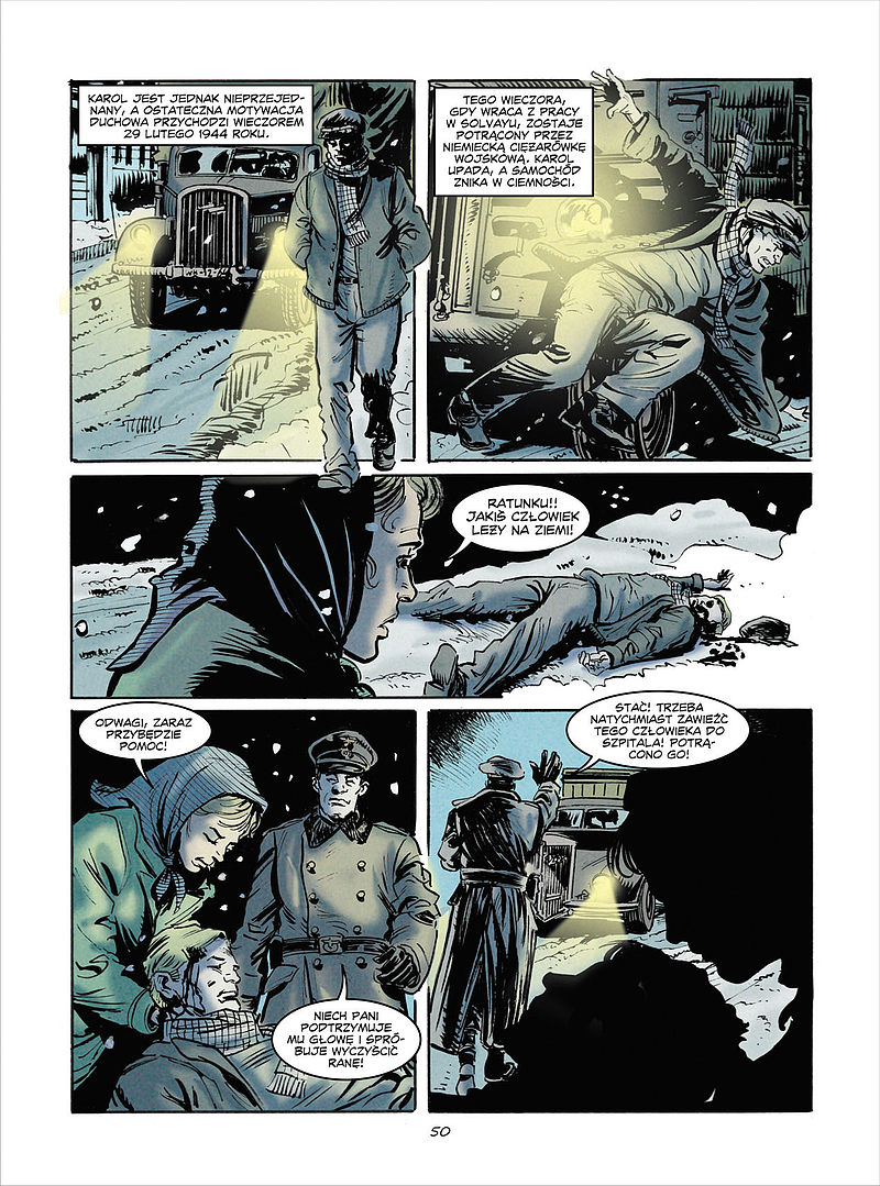 Wizualnie również jest niezgorzej. Nawet jeśli Vincenzo Arcesa (notabene udzielający się m.in. na łamach włoskiego magazynu „Skorpio”, w którym względnie niedawno zaprezentowano „Ixbunietę” Sławomira Zajączkowskiego i Krzysztofa Wyrzykowskiego) trudno byłoby uznać za plastyka tej klasy co Sergio Toppi i Paolo Eleuteri Serpieri, to jednak grono włoskich twórców komiksu nie ma powodów, by wstydzić się jego przynależności do tego środowiska. Świat kreowany w wykonaniu rzeczonego zachowuje zgodność z realiami epoki, w której niniejsza opowieść została osadzona. Nie brakuje zróżnicowanych perspektywicznie ujęć, trafnie oddanej ekspresji portretowanych postaci, a stonowana, chłodna kolorystyka (w wykonaniu Valeriany Cretelli) okazała się właściwie dobrana w kontekście nastrojowości tej historii, w przeważającej mierze rozgrywającej się w jednej z najbardziej mrocznych epok w dziejach ludzkości, mielonej na popiół i pył przez ateistyczne totalitaryzmy.